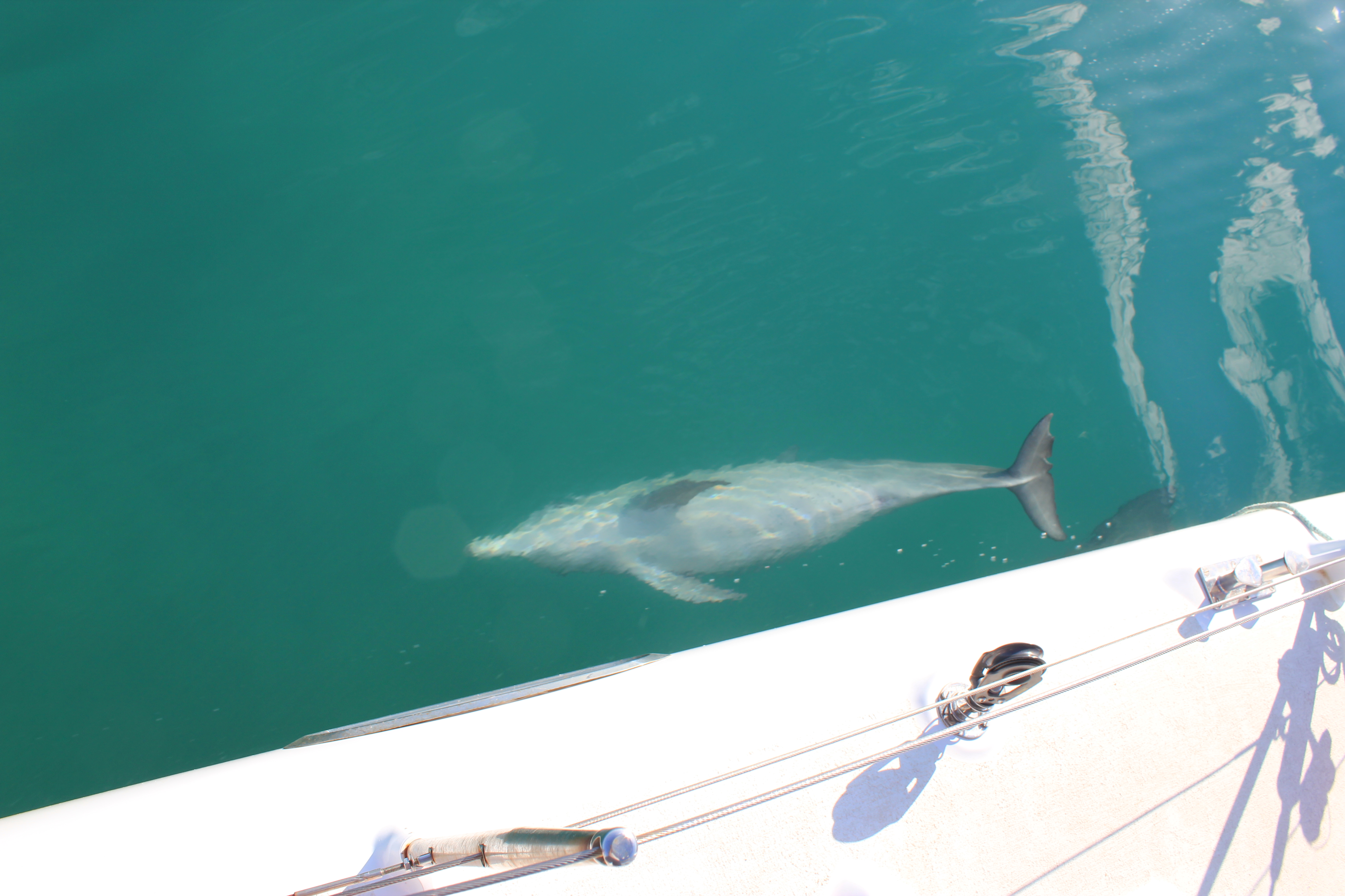 We then motored around to Monkey Mia, as there was no wind to be had – but the ride was smooth with glassy seas. I had my camera ready to glimpse a few of the locals…