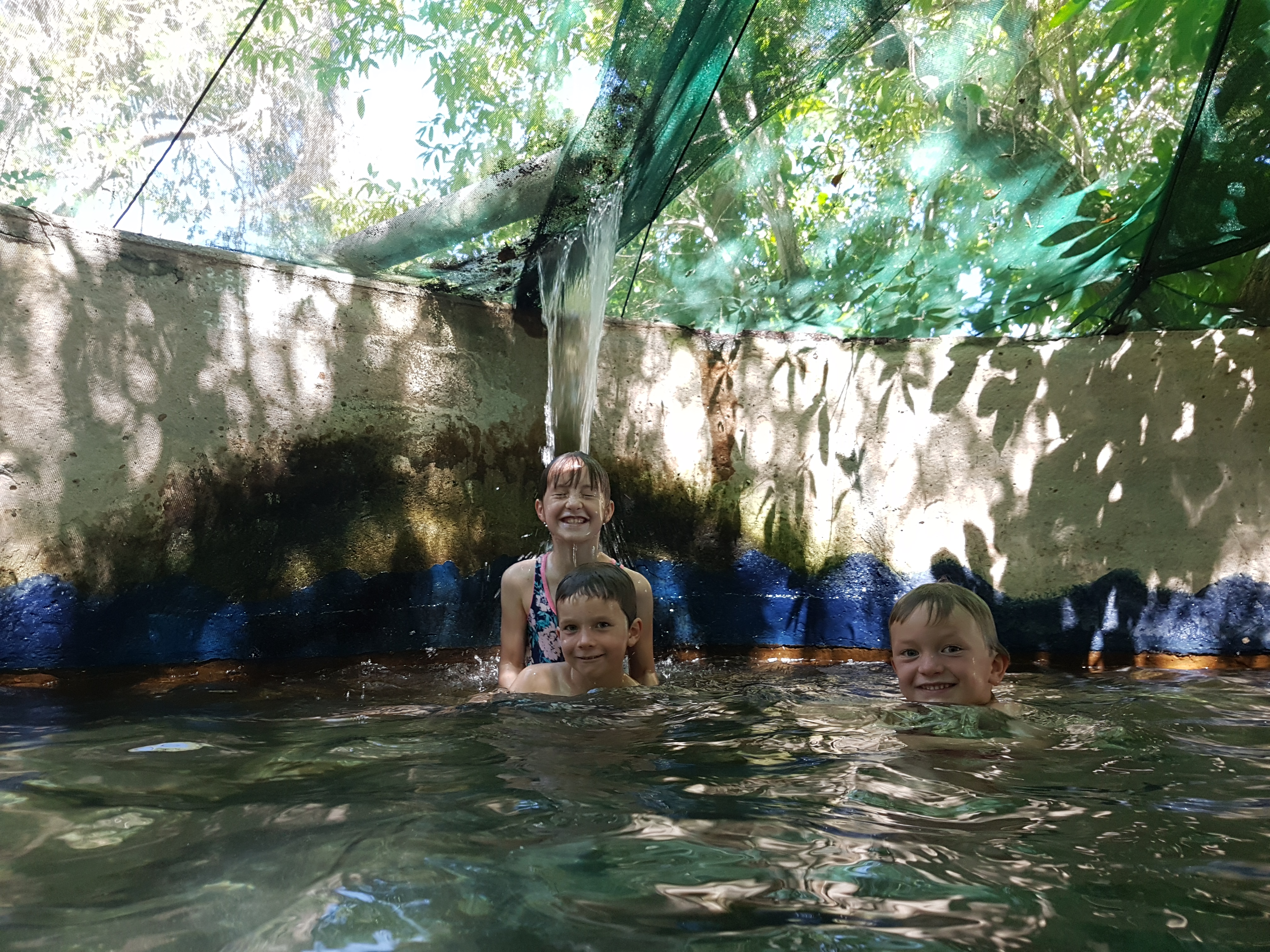 We had our first dose of a fresh water dip here – a fresh water spring feeds a water tank that was built a while ago by mining companies operating at Koolan and Cockatoo Islands. This is also the home of the famed ‘Squatters Arms’ – set up by Phil and Marion Wray who cruised here in the mid ’90’s. Price of a swim? A six pack. Scotty is now caretaker of the lease at Silvergull, and we had a lovely cooling dip – joined by Fiona and Jason from ‘Kinetic Energy’.