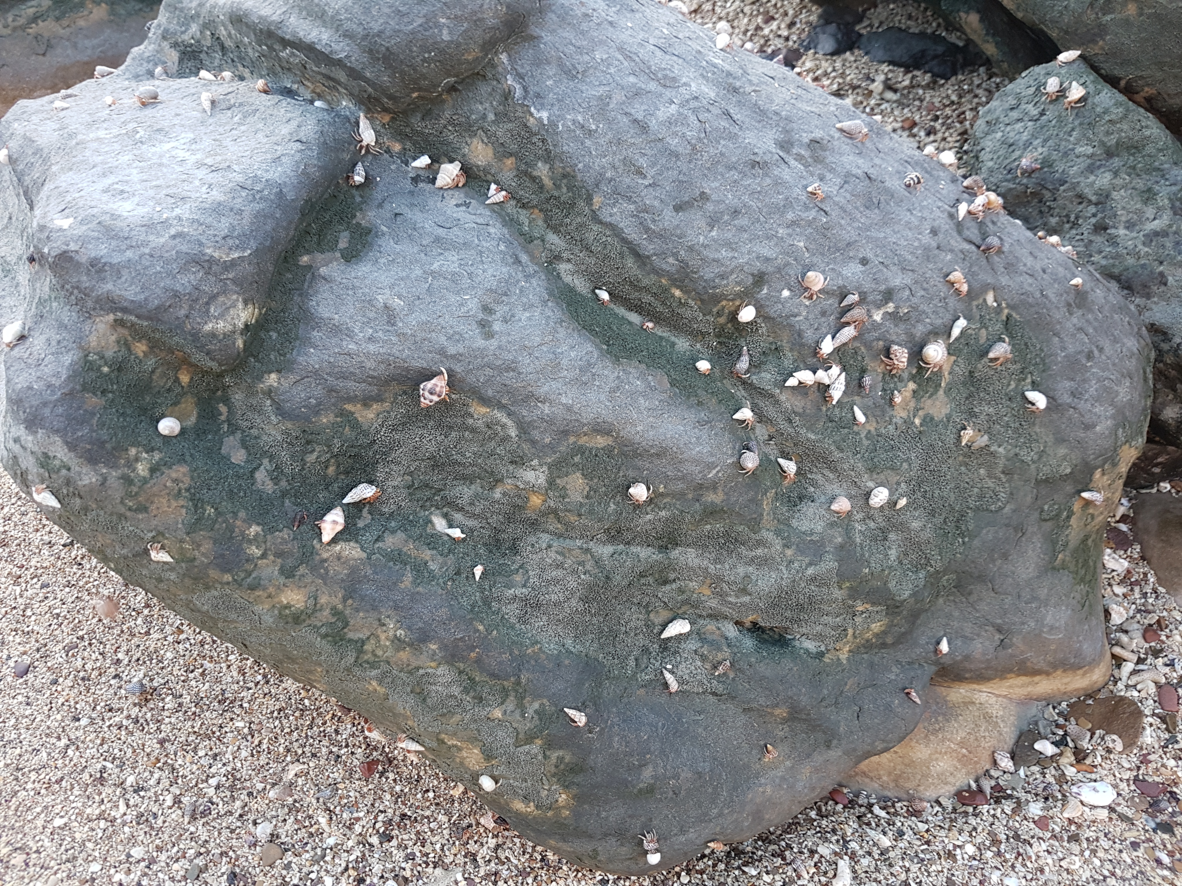 A very large population of hermit crabs on the beach at Raft Point. Love these critters. Was denied keeping one as a pet. Told I have 3 children instead.