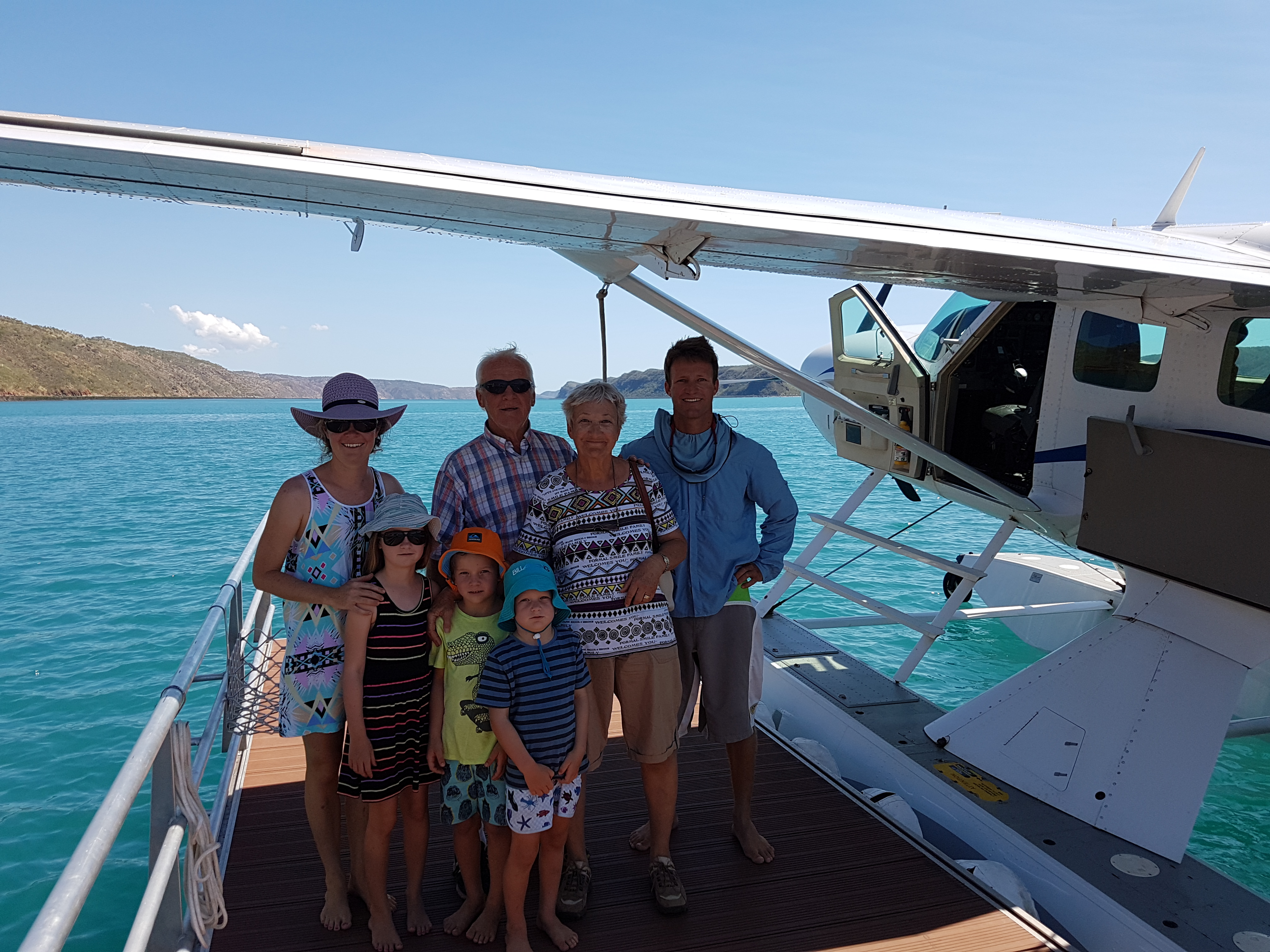 So on Friday 11th August we motored through the windy channels back to Talbot Bay, where the iconic Horizontal Falls are and the “Horizontal Hotel” that operates there. Gilbert wanted to give the kids a helicopter ride, and after zipping over to see if it could be managed – the kids and Stefan were away for an exciting 10 minutes over the surrounding area!