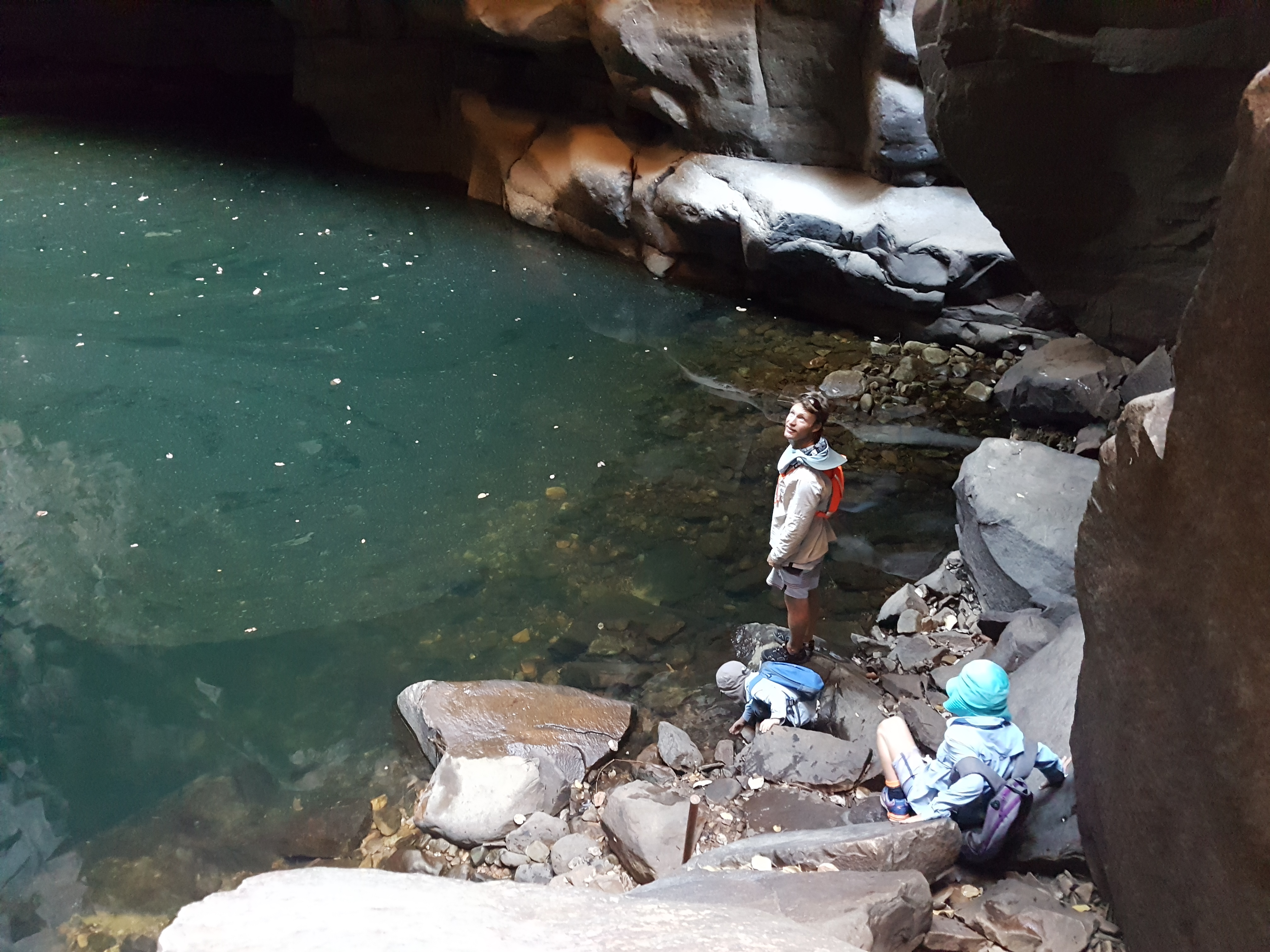 We found a suitable depth to anchor nearby and found the rock scramble to the top of the plateau, with a promise of some freshwater pools and a swim at the top.