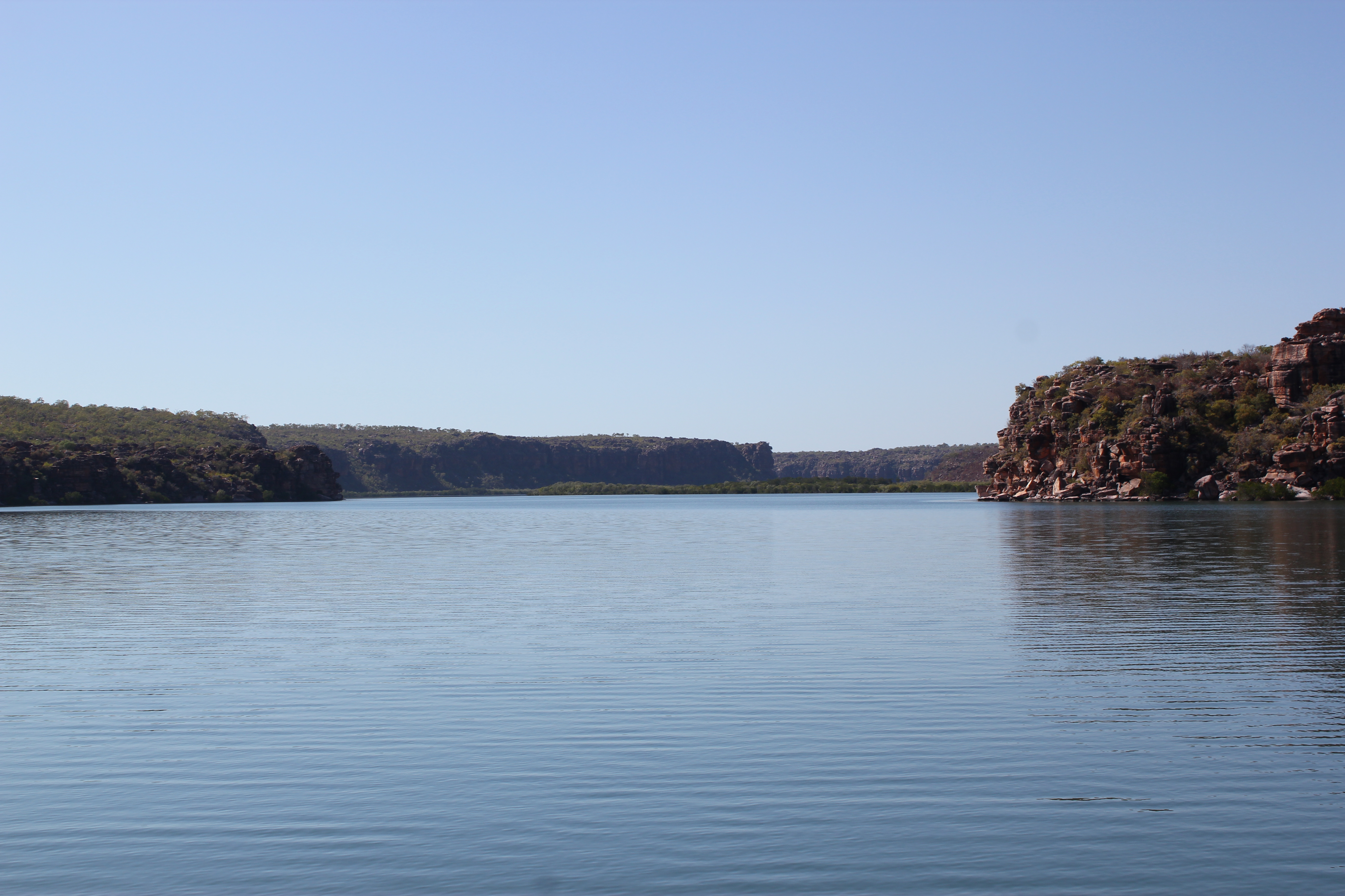 After waiting for the high tide to leave Glycosmis Bay, we were able to sail down to the King George River mouth. We had heard the sand banks at the mouth of the river had shifted from previous years thus negating the accuracy of the entrance waypoints we had. The dinghy was deployed to find the deepest channel – bingo! Shallowest depth was 1.2m – heaps of water! We anchored just inside the mouth for the night, ready to meander along the river over the next few days…